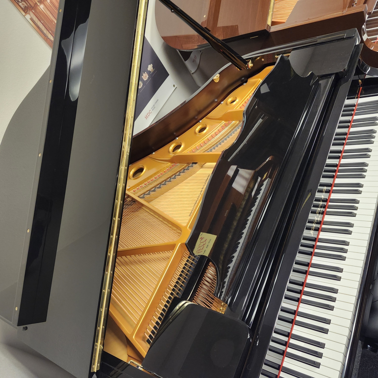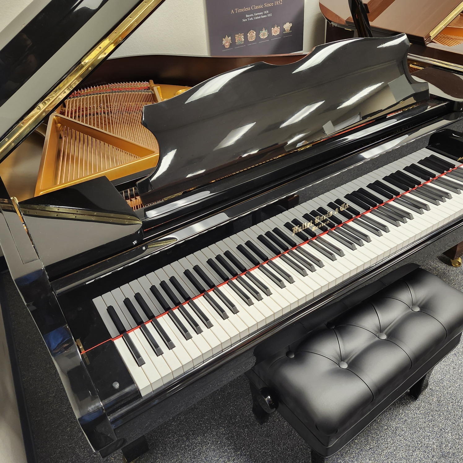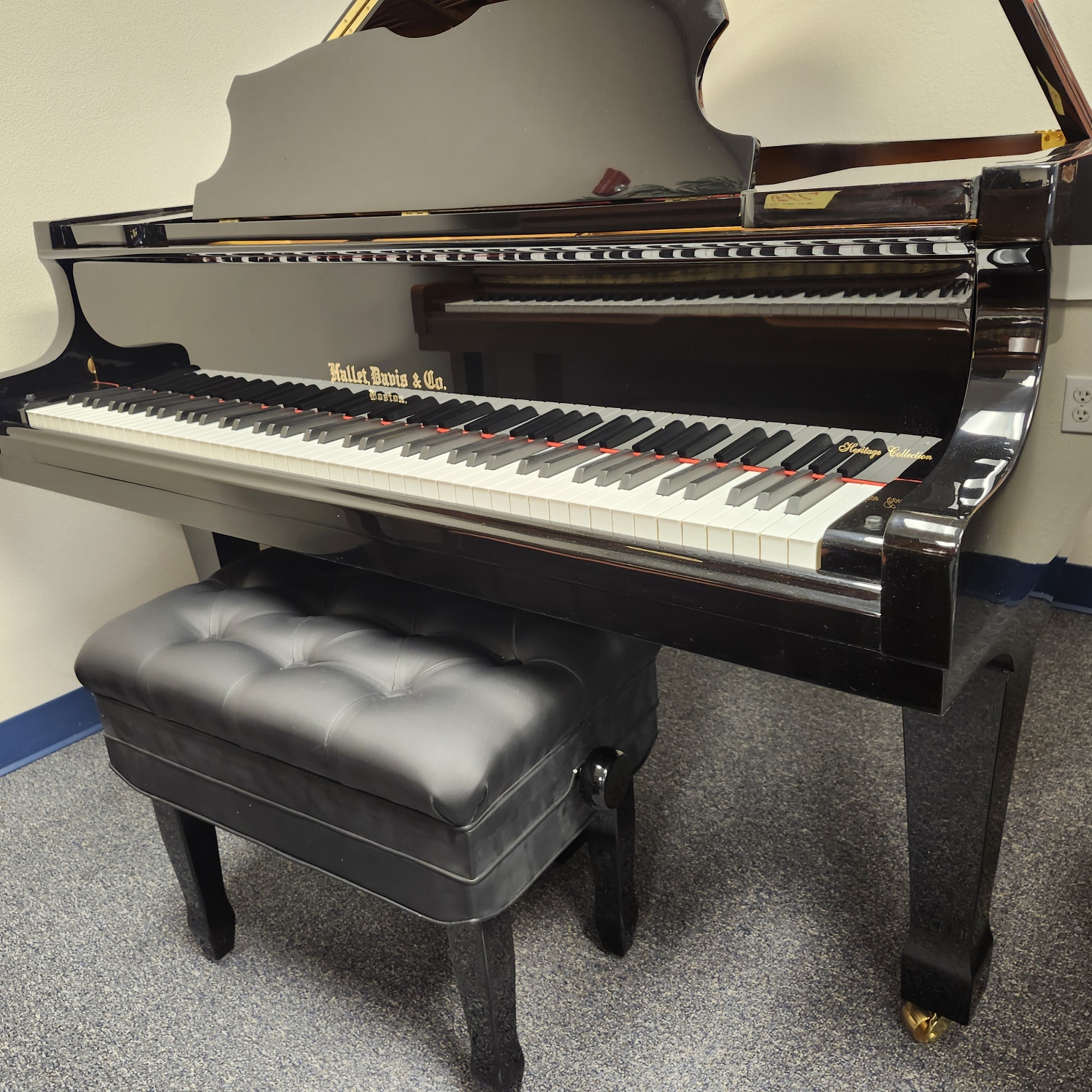 This Hallet Davis Heritage Ebony Baby Grand is a stunning new piano from China’s oldest and most experienced factory. Maker of pianos for national events, this factory is considered a national treasure. This 4’9″ Baby Grand is from the Heritage series of Hallet Davis. It has a surprising full, yet warm tone for such a small grand, and a responsive even touch. Comes with a 10 year warranty like all our new pianos. Includes a super-comfortable padded adjustable bench with storage. No one in our area has a new piano of this caliber that is still in this price range.
