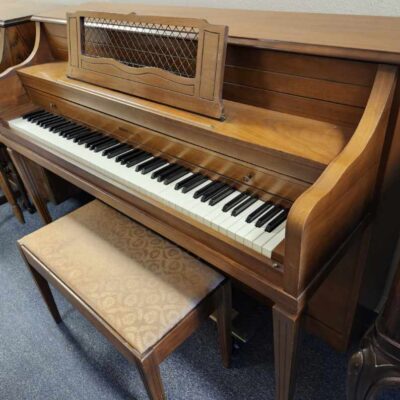 This cute little Pianola Spinet Piano was once a player piano, but has not been restored to play the rolls anymore. But it is still working nicely as a small piano, and holding its tune quite well too. And the oak cabinet is still in very good condition. This little piano features only 64 notes but would be adequate for a beginner, or even many intermediate players use only the middle notes on a piano. We have the rolls of music to go with it too, for someone who wishes to restore the player (not one of The Piano Guys’ services, but we’ll help you find a tech who can). As with all our pianos, it comes with a Full Trade-up Option if you progress beyond its capabilities. No warranty.