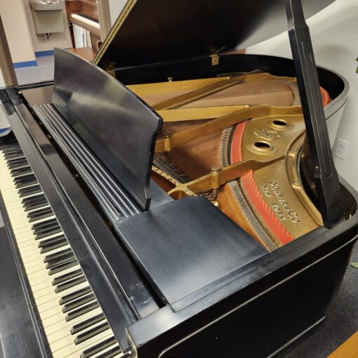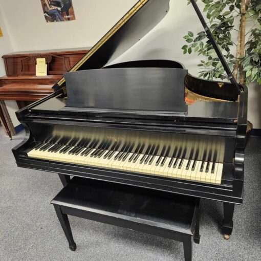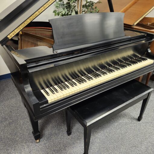 This Sohmer Parlor Grand was made in New York when several companies competed with Steinway for popularity in the region. It is a 5’8″ ebony grand piano which has a lot of music left in it, after already giving five decades of service. Well-kept in a fine local home, this one will satisfy any beginner and most intermediate players. And it has a lovely bass, fuller than many smaller grands. After The Piano Guys’ grueling preparation, this one is a nice value.