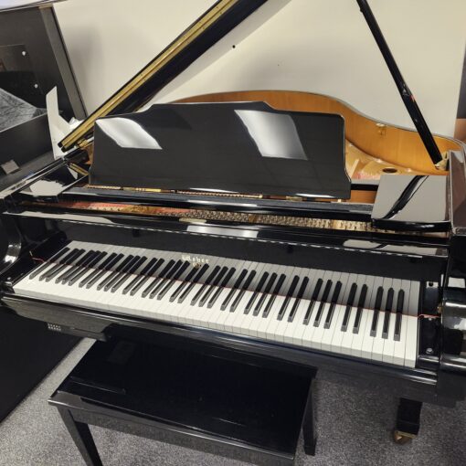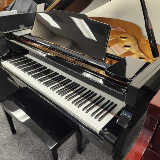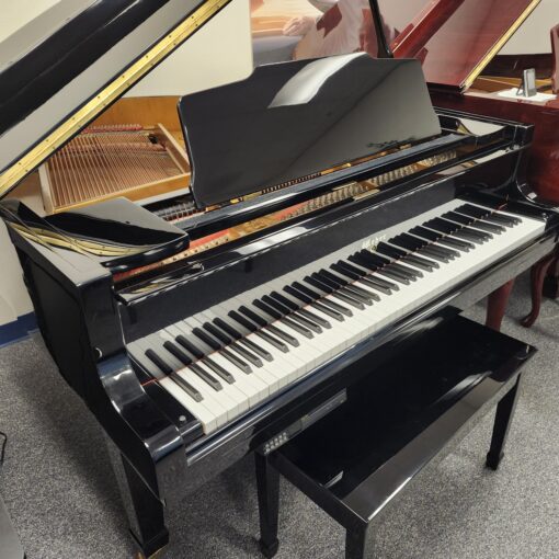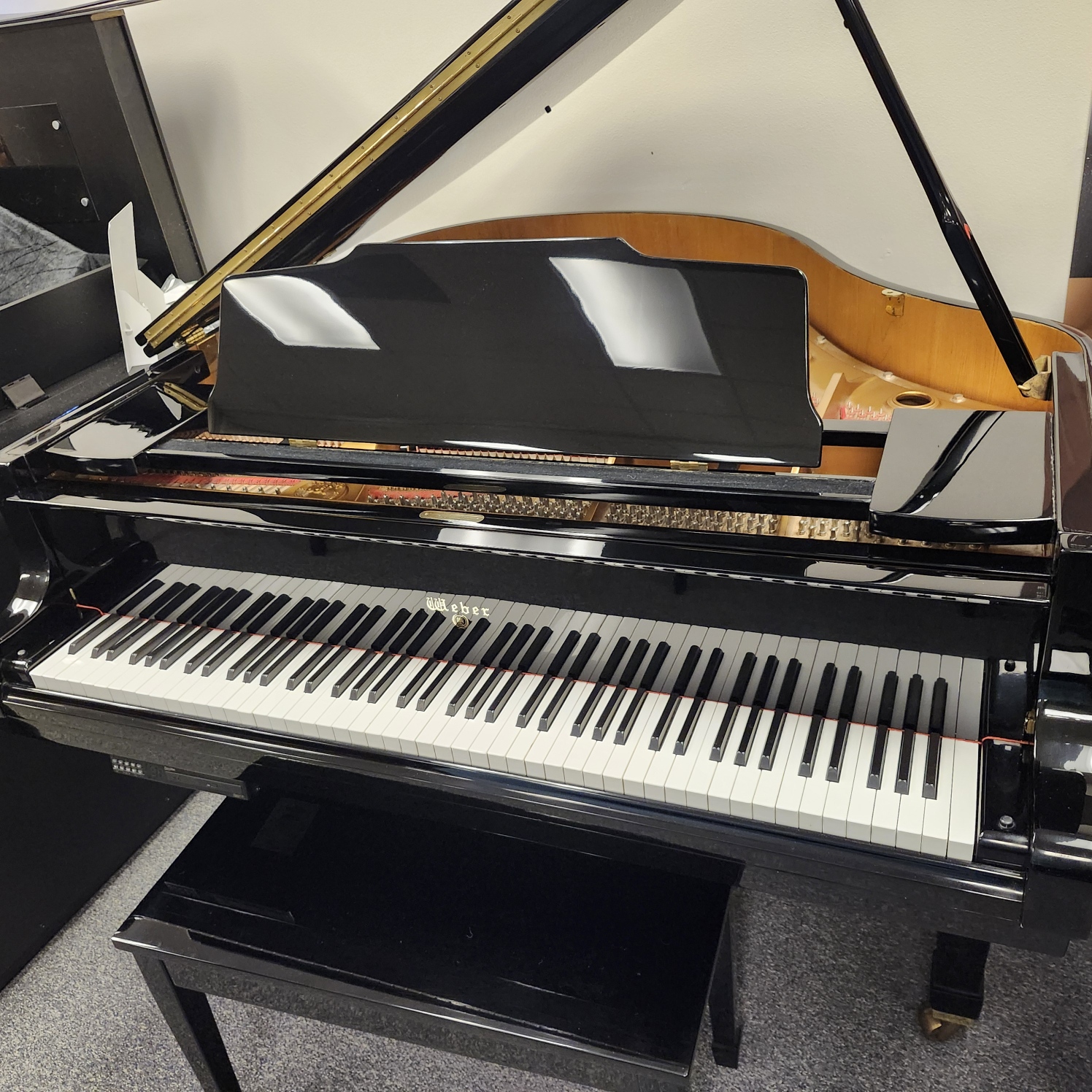 Here is a lovely Weber Ebony Player Grand Piano offered for sale by The Piano Guys. We have more used player grands than any other outlet for many miles. This 4’11” Baby Grand was made by Young Chang about 25 years ago, and later a nice Pianodisc CD player system was added, which is still in good working order. We could upgrade it to wireless for about half the cost of adding a new system, so it could be a very cost-effective way to have the latest technology on a nice player grand. Or use it a great Baby Grand to play or practice on, and just add the live element of someone entertaining you when you’re in the mood. Live dinner music whenever you want! Nice find!