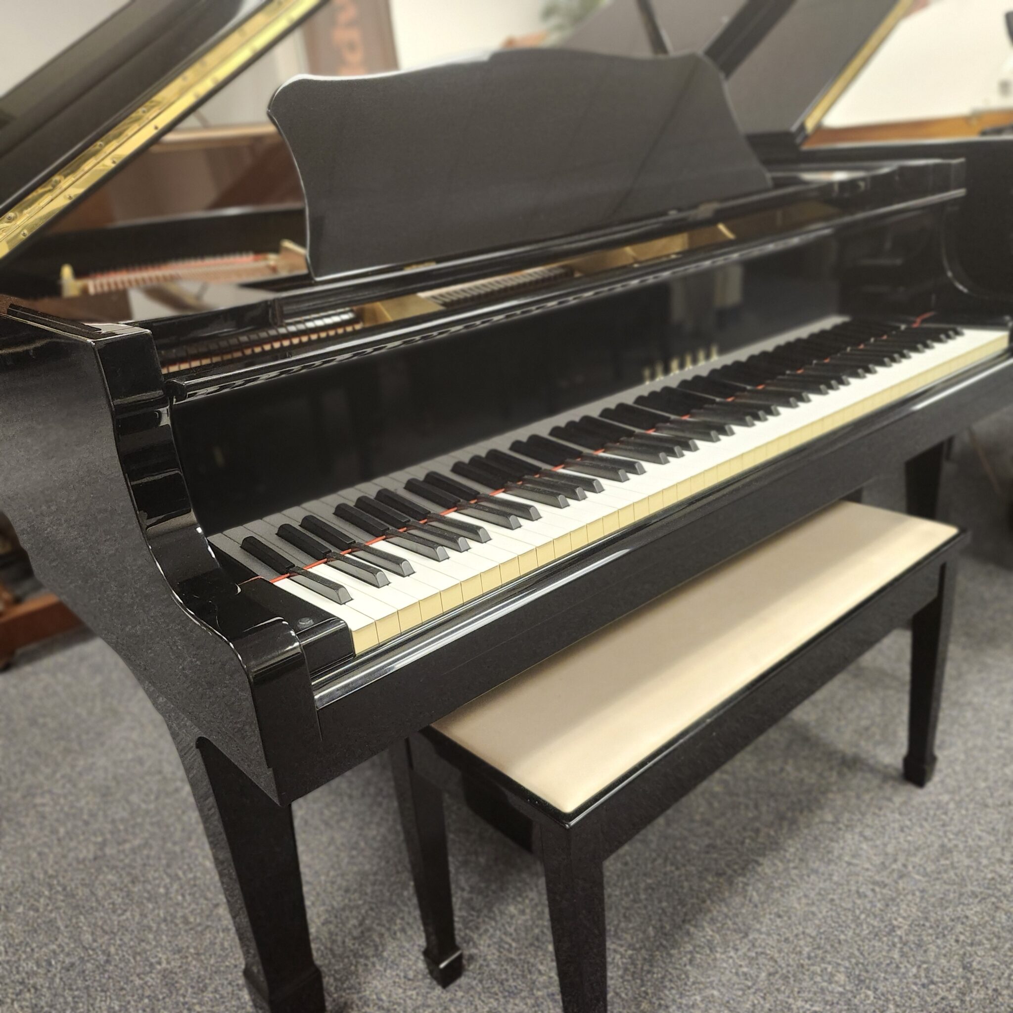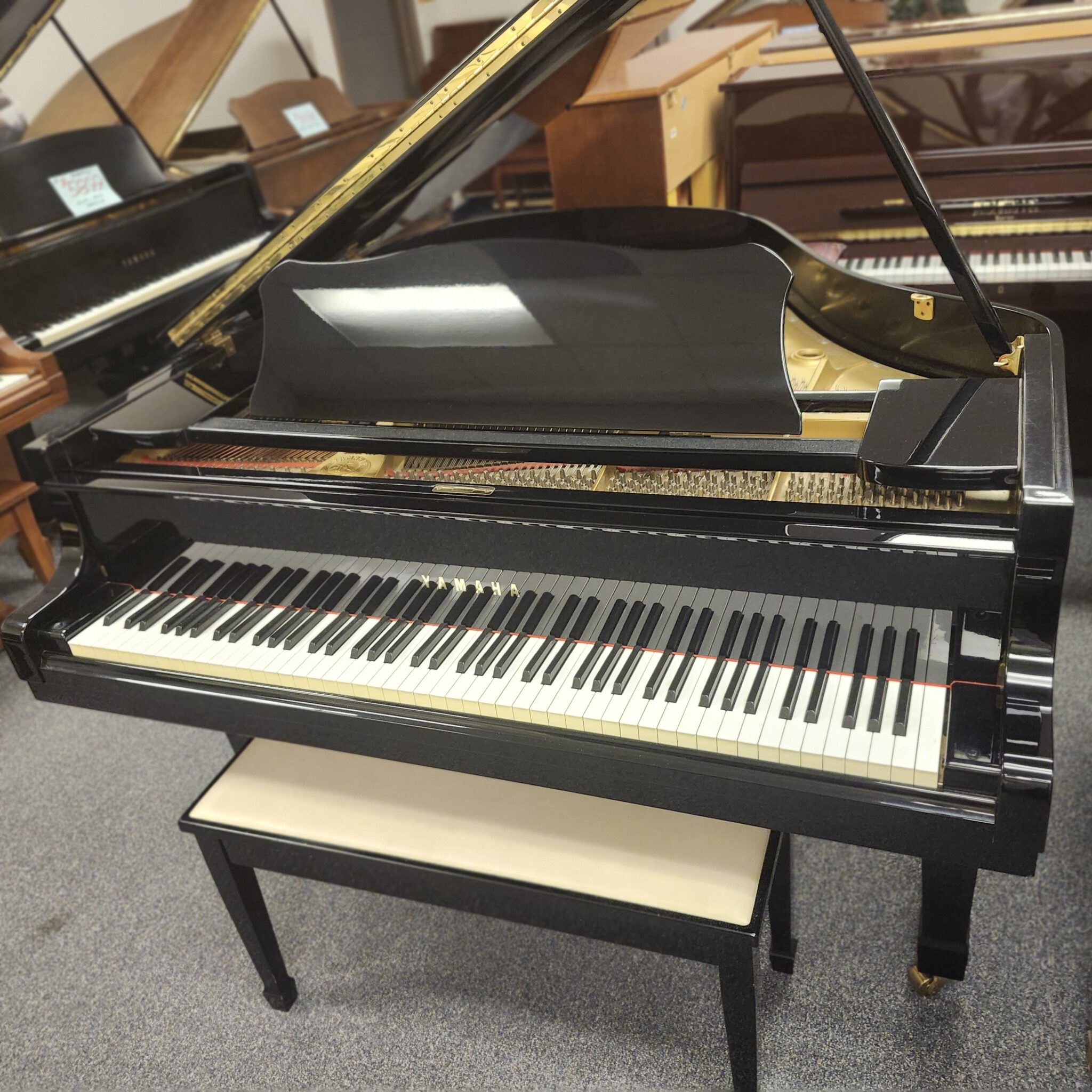 We finally found it! This Yamaha Ebony Baby Grand was made in Japan to the most exacting standards, and has earned its stellar reputation. This 5’3″ model G1 was kept in one home until a move is forcing the piano’s relocation. And it has great intonation, with clear, moderately brilliant tone that is not harsh or shrill, but pleasing and expressive. Made in 1985, this Yamaha was made for the U.S. market if that sort of thing matters to you (if you read the internet and confuse Florida with Arizona, it might matter to you, as we understand). The market for these tightened up in the past year, so now is the time to check this one out. Won’t last, guaranteed.