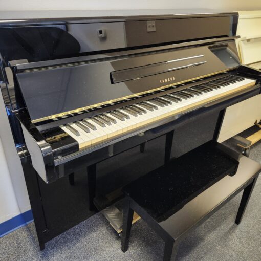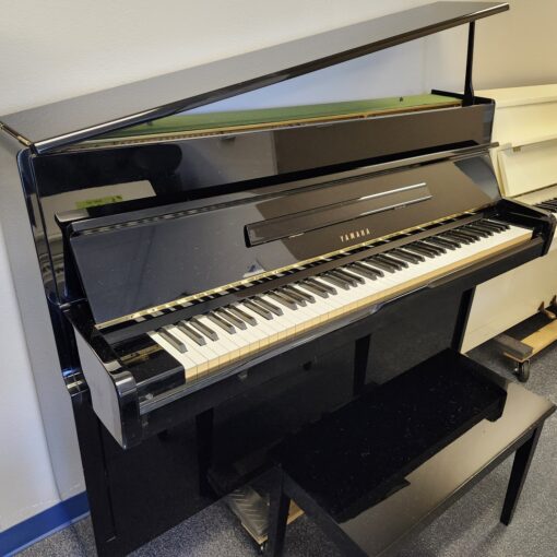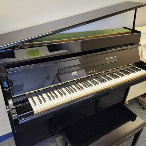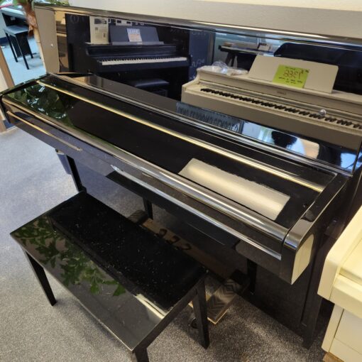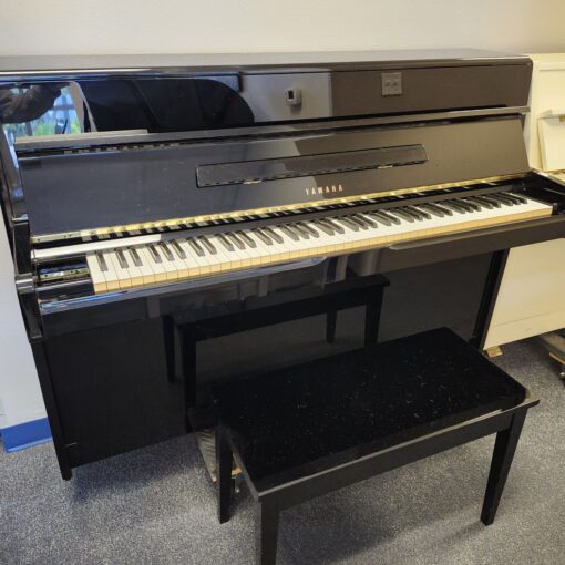 This Yamaha Ebony Console Piano was made in 1984 and kept in one nice Florida home. It was gently treasured till The Piano Guys accepted it and put it through our usual rigorous preparation process. And it was made in Japan and has the traditional ideal Japanese tonal quality that shines with brilliance and purity. Excellent tuning stability too! This piano is 43″ tall and only 22″ deep. It will fit anywhere! This would be a great piano to learn on, or a nice little model for a fine player to practice on as well. We can’t always find these in such good shape and the black ones never last long. Includes the matching storage bench. Call us right away! For Yamaha’s most famous upright, go here.