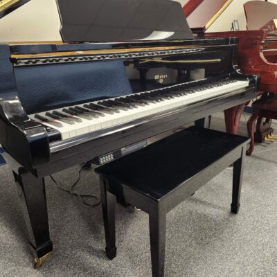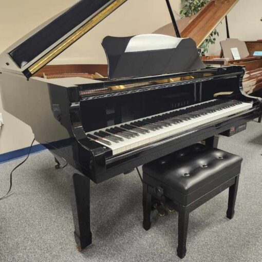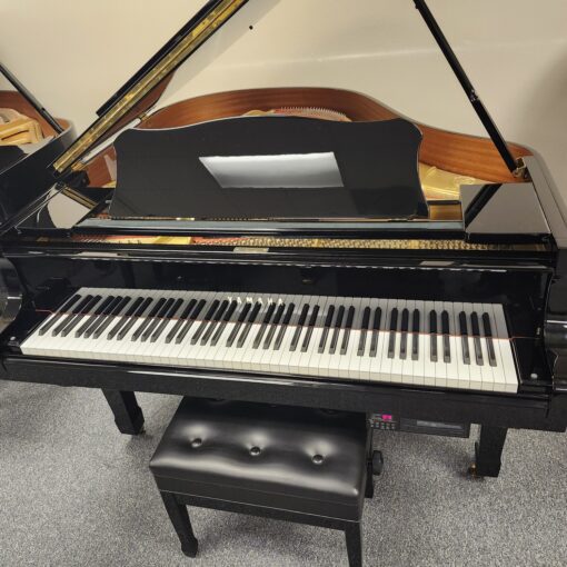 This Yamaha Ebony Player Grand is a 5’3″ Baby Grand in stunning Ebony Polish, made in Japan in 1989. The owners had a QRS player system added about 20 years ago, so that it could add many more hours of enjoyment to their home. And the CD player system still works great. Hard to even find great Japanese-made grands in this condition for the price range, and any performer will love playing this piano. Yet, this one has the player as well, so you can enjoy dinner music when you’re done practicing. Black Yamaha’s are a hot commodity in our line-up, so we know this one won’t last long either.